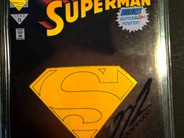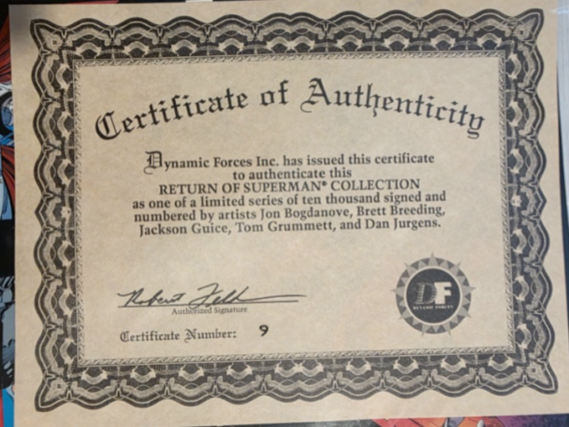 These Superman comics are completely wrapped and sealed, once opened when they were individually signed by the artist. Certified